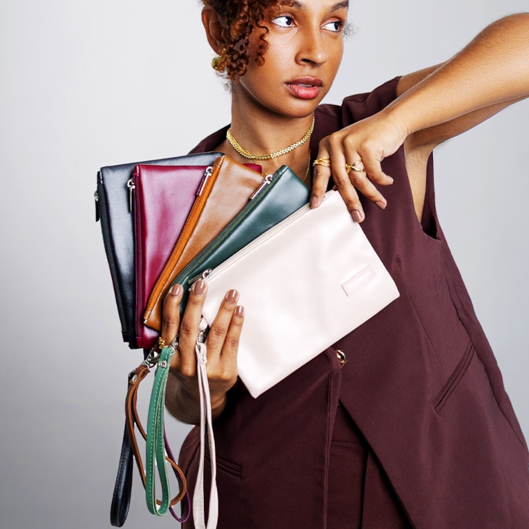 Bastante prática de carregar, conta com uma alça de mão lateral removível, e também vem com fechamento em zíper! Além disso, ela é super versátil, já que tem um modelo flat muito elegante, e o tamanho ideal para comportar tudo o que você precisa!