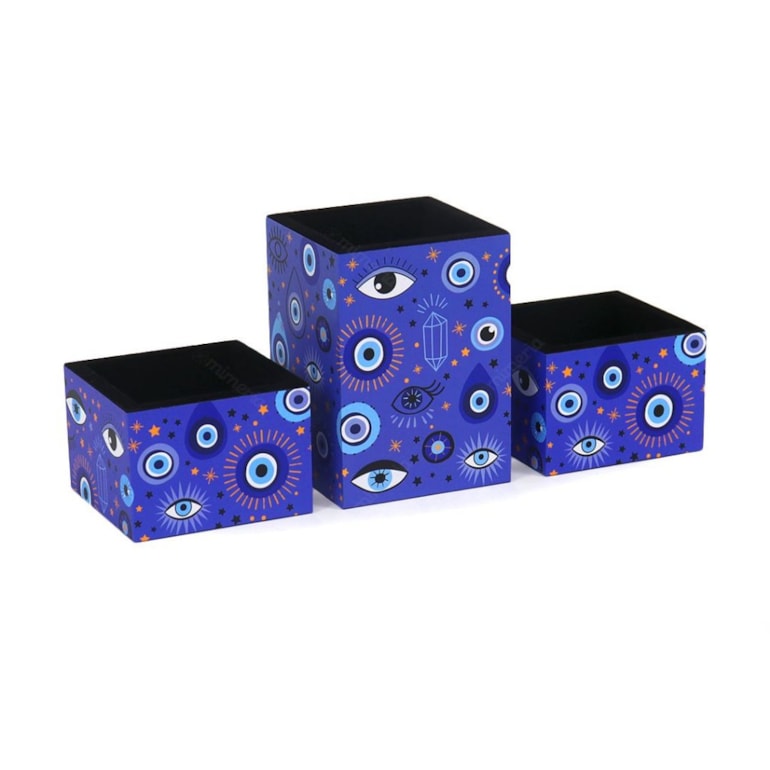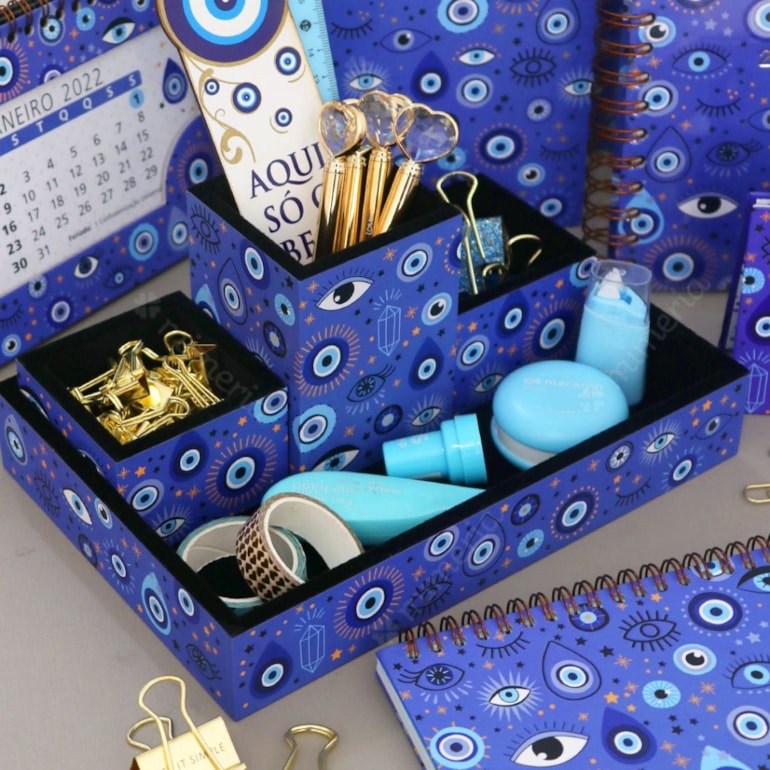 Com o Organizador de Mesa Olho Grego Azul a sua mesa de estudos e trabalho vai ficar completamente estilosa e super bem-organizada. Objeto perfeito para quem adora elementos místicos e cheios de energia positiva!