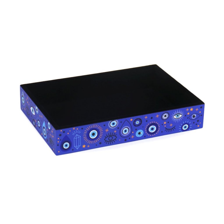 O Organizador de Mesa Olho Grego Azul vem inteiramente estampado com diversos tipos de olhos gregos com detalhes em preto e dourado sobre um fundo azul, ele é absolutamente fantástico! Conheça outros produtos da linha e monte uma mesa dos sonhos.