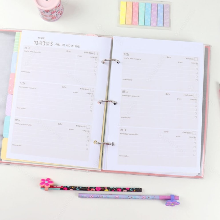 O Planner Argolado Fichário Corações Holográficos Rosa te ajuda na organização da sua rotina e na realização de metas e objetivos. É também um presente perfeito para as amigas que almejam um dia a dia mais organizado.
