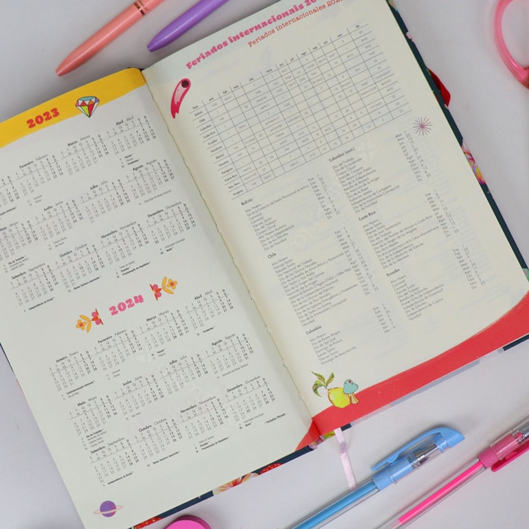 Perfeito para carregar na bolsa ou na mochila, este Planner Capricho Morangos da Tilibra é perfeito para anotar todas as atividades do seu dia a dia. São 80 folhas lindamente decoradas cheias de detalhes que você vai amar. Ele ainda vem com uma cartela de adesivos, calendários 2023 e 2024, planejamento anual e mensal. Tudo o que você precisava.