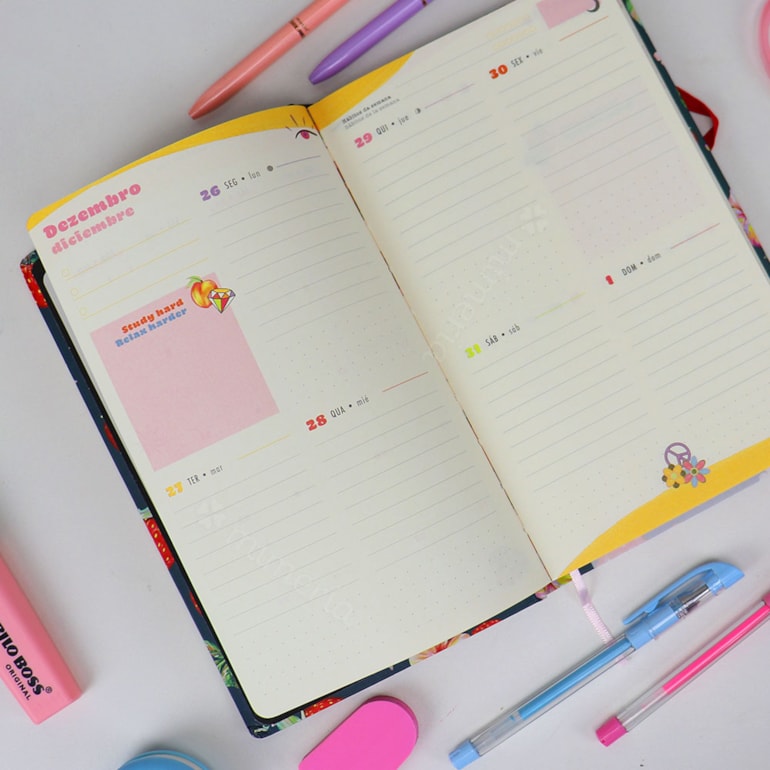 Se você ama papelaria, você vai adorar esse o Planner Capricho Morangos. Com ele você consegue organizar sua rotina escolar com muito mais praticidade e encanto.