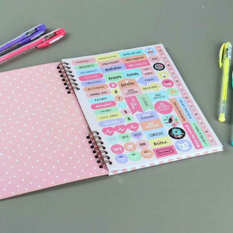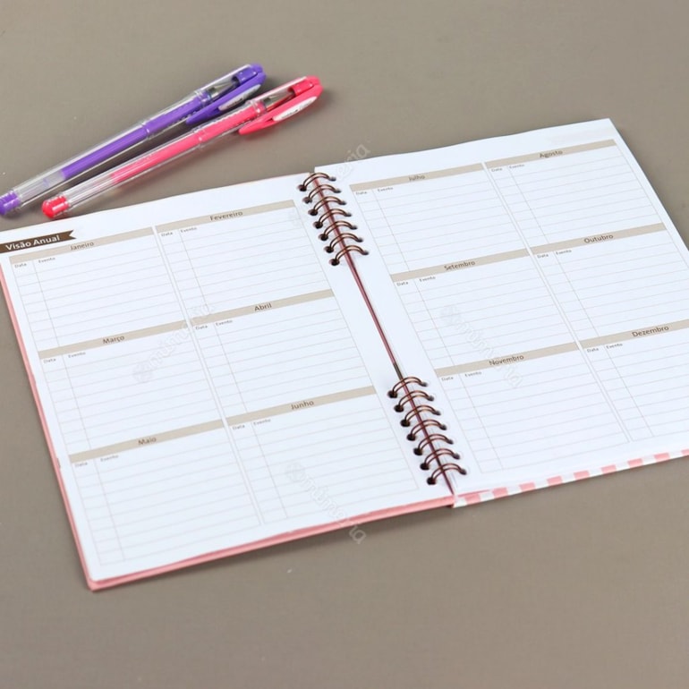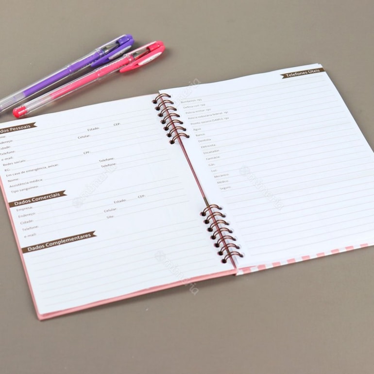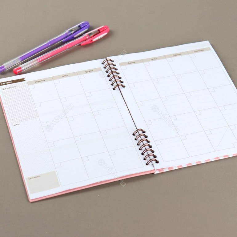 Super compacto, este planner vem com uma página para dados pessoais, uma para anotar telefones úteis, uma para agenda telefônica e o restante das folhas contam com espaços para você se organizar mensalmente, anotando seus compromissos, metas e muito mais!
