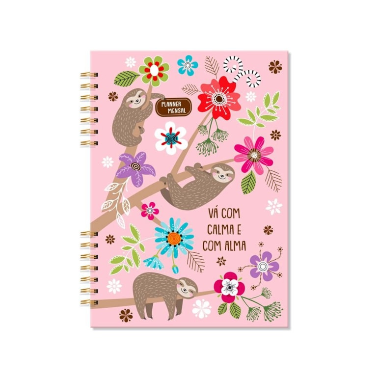 O Planner Mensal Bicho-Preguiça é ideal para os adeptos do deboismo! Muito charmoso, tem uma linda capa decorada com preguicinhas, flores coloridas e a frase “Vá com calma e com alma”. Um verdadeiro mimo!