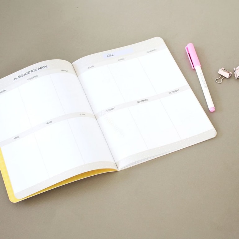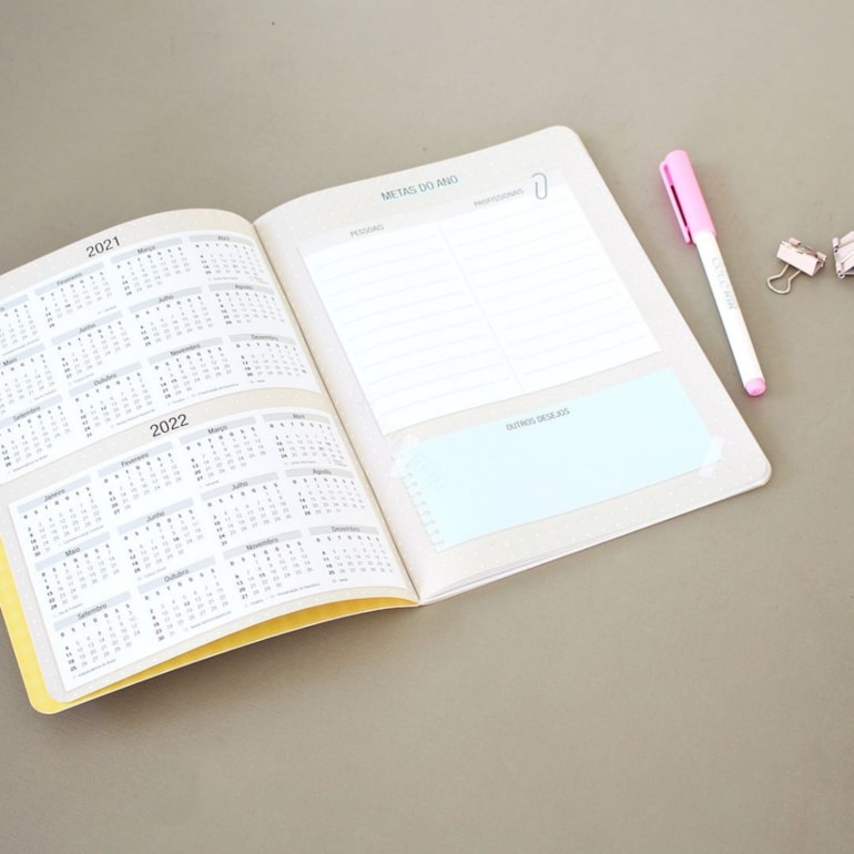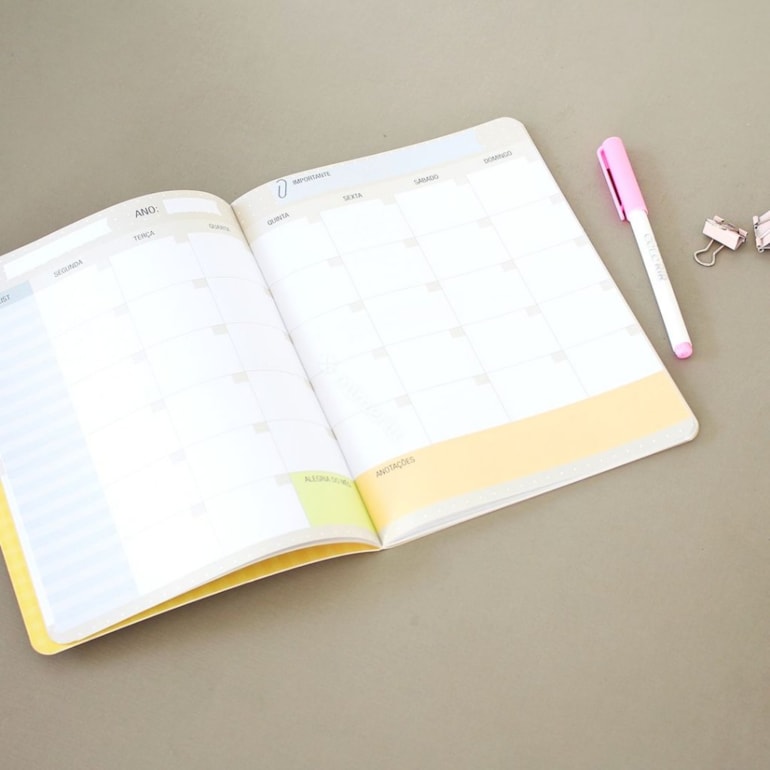 Fofíssimo, ele vem todo decoradinho com cerejinhas e florzinhas brancas sobre um lindo fundo salmão, com detalhes em um meigo xadrez amarelo. É tudo o que você precisava para manter seus meses muito mais produtivos e alinhados!