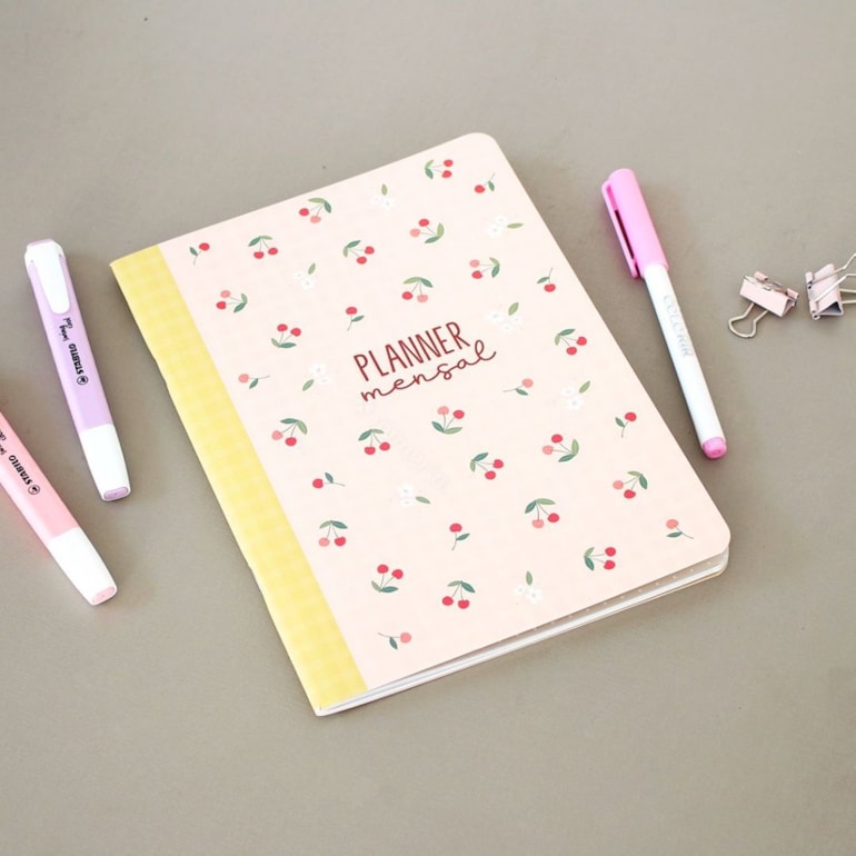 O Planner Mensal Cerejinha é perfeito para quem ama papelaria e é apaixonada por estampas delicadas, com ele você vai estar sempre organizada e glamurosa!