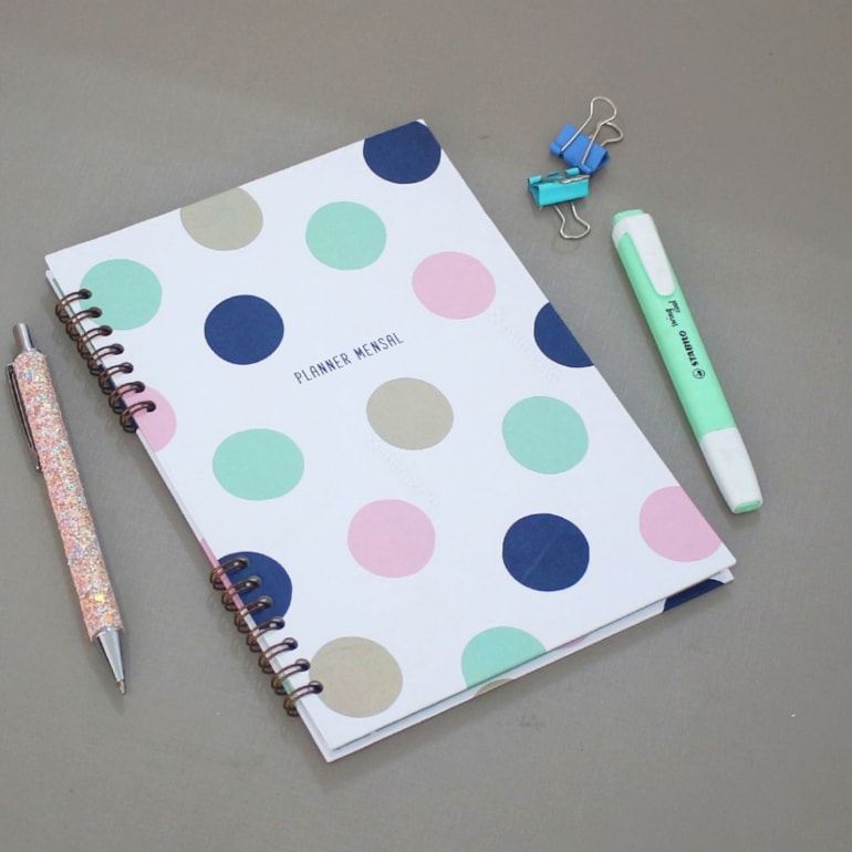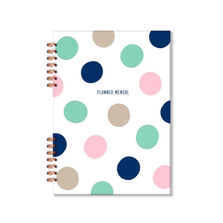 O Planner Mensal de Poá tem estampa lindíssima de círculos coloridos em fundo branco. Ideal para combinar com outros mimos de papelaria da mesma coleção!