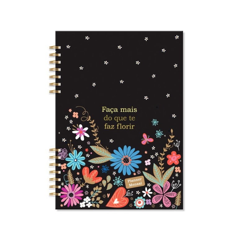 O Planner Mensal Fiore é ideal para você que ama a natureza! Muito charmoso, tem uma linda capa decorada com uma estampa floral maravilhosa, detalhes em rose gold, e uma frase inspiradora: "Faça mais do que te faz florir". Encantador, não?!