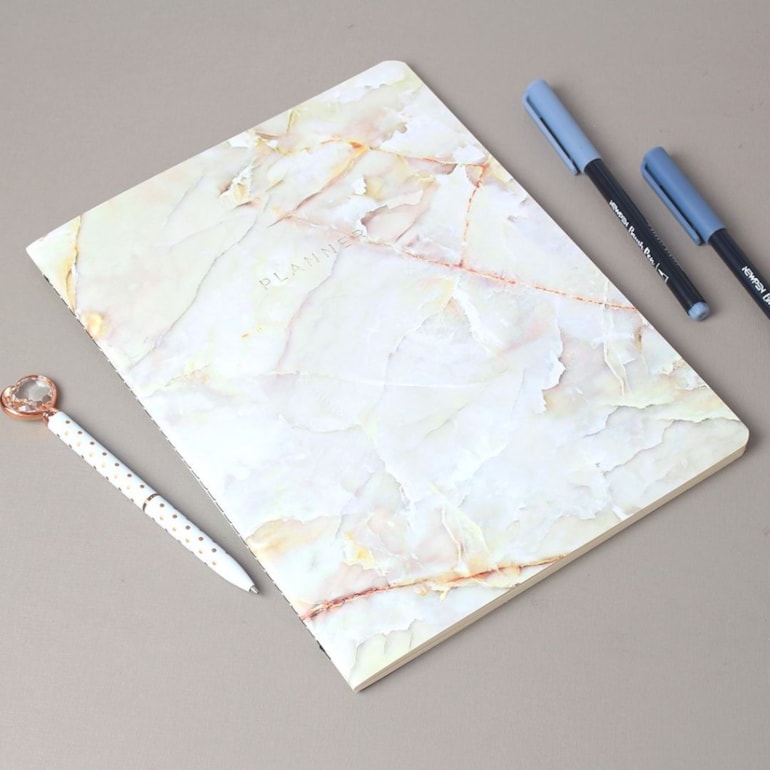 O Planner Mensal Minerais Mármore Branco possui um miolo projetado com os 12 meses do ano, diversas folhas avulsas para anotações mais flexíveis, e espaço para planejamento financeiro, checagem, notas e anotações! Ele vem com um calendário por folha e possui quadrantes largos para colocar todas as suas informações, é exatamente o que você estava precisando!