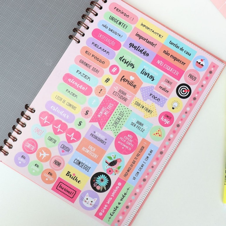Com miolo completo e compacto, este planner vem com páginas para planejamento mensal e ainda conta com cartela de adesivos. Ideal para usar no dia a dia!