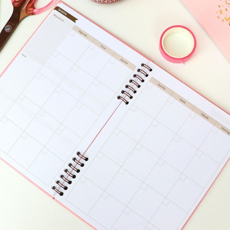 O Planner Mensal Rosa Quadriculado é perfeito para quem gosta de organizar a rotina de forma simples, rápida e prática.