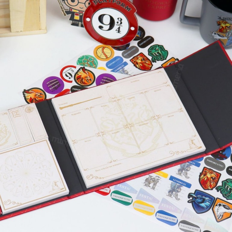Direto da melhor escola de magia do mundo, para a sua escrivaninha! Chegou o Planner Organizador Semanal Capa Dura Hogwarts Harry Potter! Com ele, vai ficar tão fácil de planejar a sua semana que nem vai ser necessário o uso de feitiços!