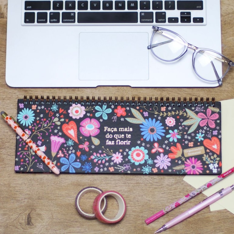 O Planner Organizador Semanal Fiore é maravilhoso! Perfeito para você que ama estampas florais, lindas e cheias de encanto. Você pode usá-lo no escritório, escola, faculdade e até mesmo em home office para planejar seu dia a dia.