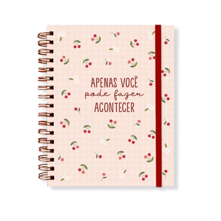 O Planner Permanente Cerejinha ainda conta com capa dura, adesivos, um calendário reduzido e completo de 2022 que pode ser usado como marcador de página e 198 folhas! Sua capa vem estampada com cerejinhas vermelhas e florzinhas brancas super fofas sobre um fundo salmão com a frase “Apenas você pode fazer acontecer”. É um verdadeiro mimo!