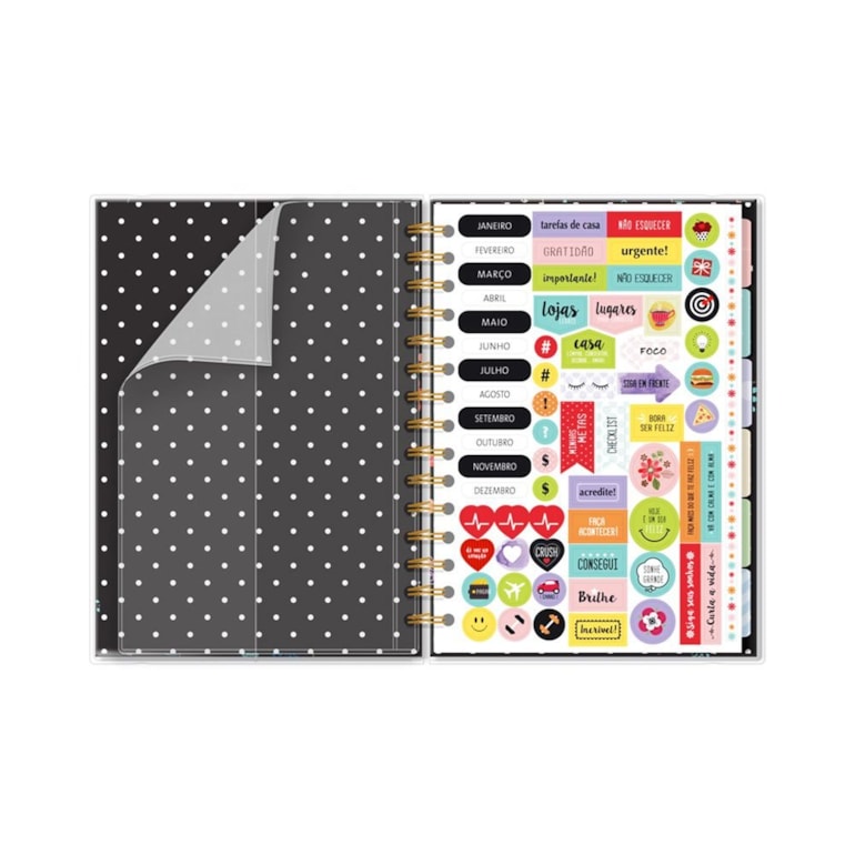 Esse Planner Permanente Fiore tem 12 divisórias decoradas com estampas fofas e frases cativantes, capa protetora em plástico, elástico para fechamento e espiral. Encantador, possui também 2 folhas com adesivos para personalizar da forma que preferir e um calendário de 2020. Ferramenta ideal para ajudar a planejar seus compromissos pessoais, de trabalho, estudo ou viagem.