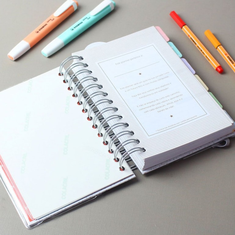O Planner Permanente Frases Coloridas Pequeno é lindinho e prático. Perfeito para carregar sempre na bolsa, deixar sobre a mesa de cabeceira, mesa de trabalho, estudos e afins!