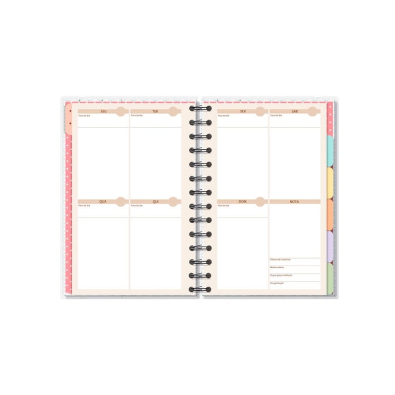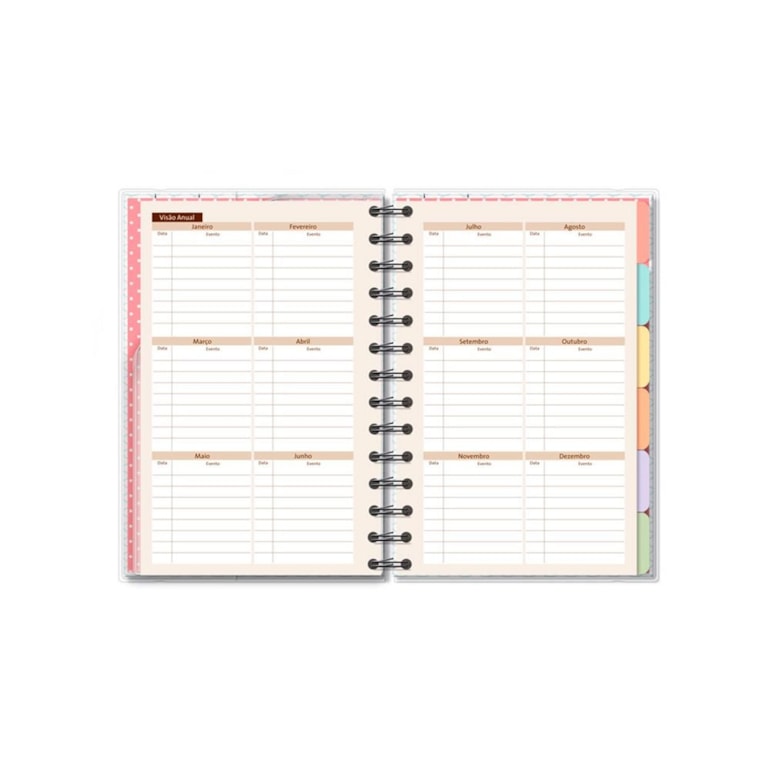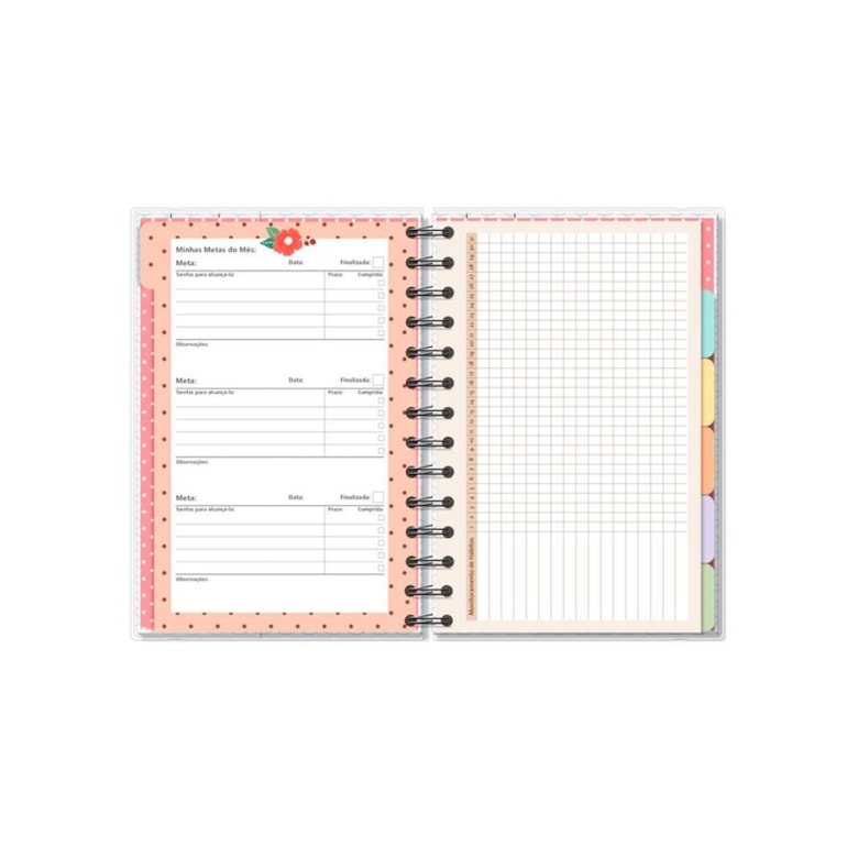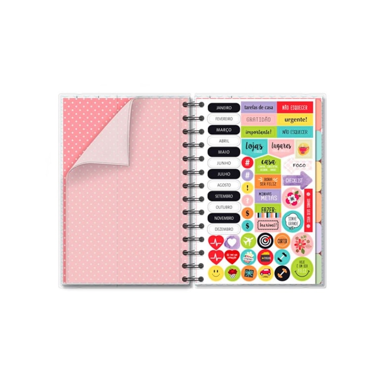 Com fechamento em elástico, espiral e capa protetora de plástico, este planner é super resistente e tem um ótimo acabamento. Além disso, é super completo e tem tudo que você poderia querer em uma ferramenta deste tipo: 12 divisórias coloridas e estampadas com frases inspiradoras - uma para cada mês do ano -; folhas para planejamento anual, mensal e semanal; páginas para monitoramento de hábitos; calendários, folhas para controle financeiro e muito mais!