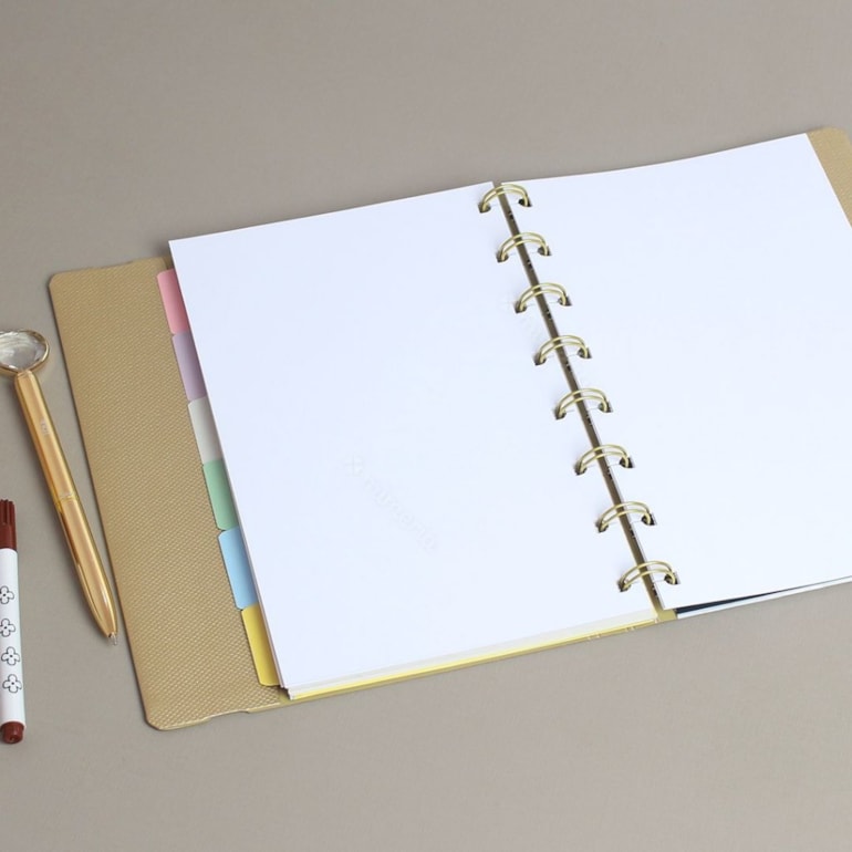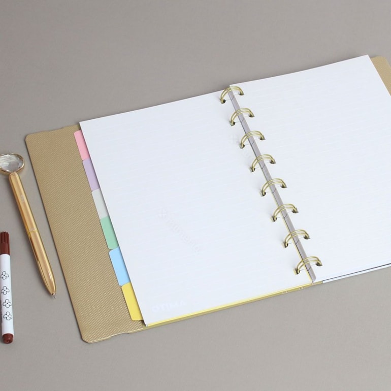 O Planner Permanente SF Metallic Dourado Ultra possui 12 divisórias coloridos e tem todos os seus refis recarregáveis! Ele pode ser montado de acordo com a sua necessidade e ainda vai durar por anos, é exatamente o tipo de mimo que você precisa!