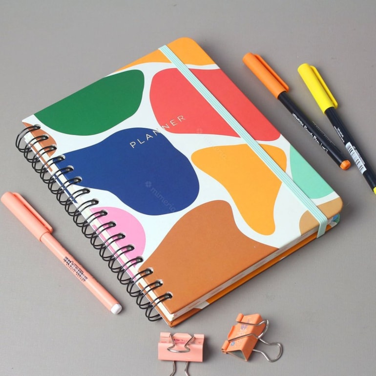 O Planner Permanente Wire-O Manchas Off-White conta com um design despojado, elevem estampado com manchas coloridinhas sobre um fundo off-white, sua capa é dura e conta com elástico resistente e ele ainda vem com acabamento em wire-o. É o mimo perfeito para você!
