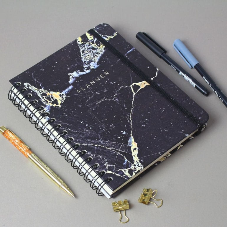 O Planner Permanente Wire-o Minerais Mármore Preto é a opção mais completa e moderna para anotar e planejar todas as suas semanas da maneira mais prática possível!