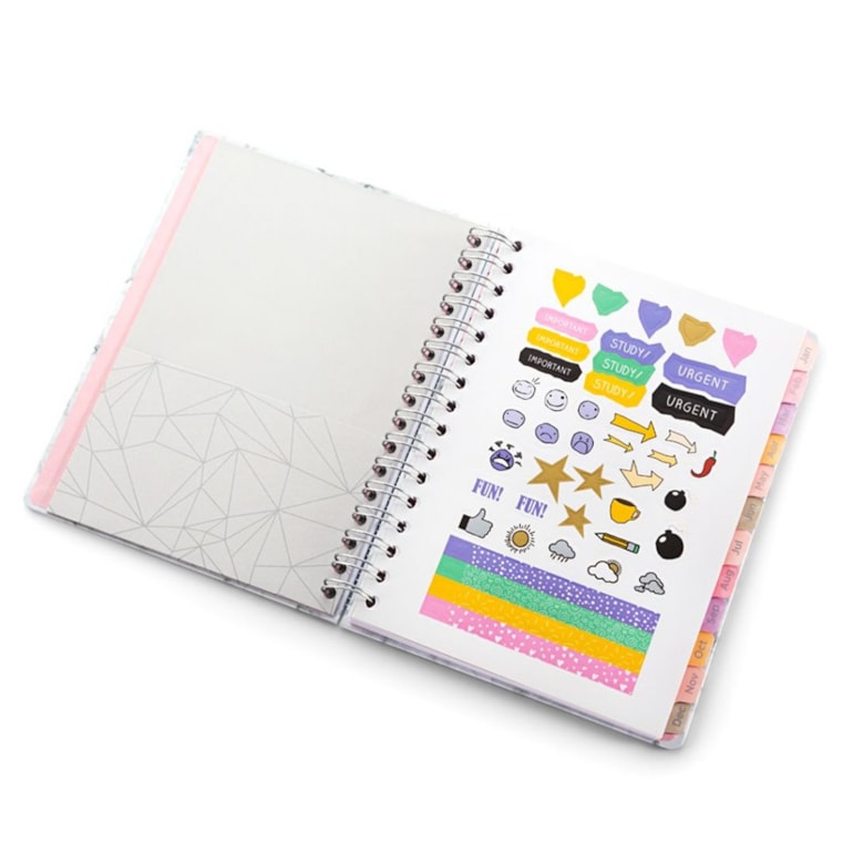 O Planner Permanente Wire-o Pink Stone Laço vem acompanhado de 2 cartelas de adesivos, envelope de papel e divisórias coloridas e estampadas. Perfeito para usar na escola, faculdade, no trabalho e para planejar metas pessoais!