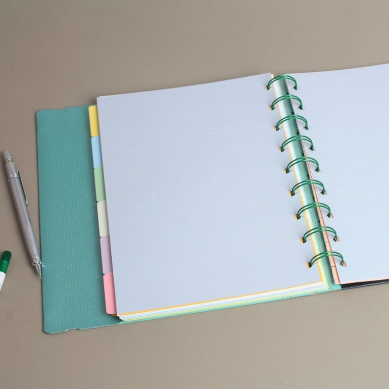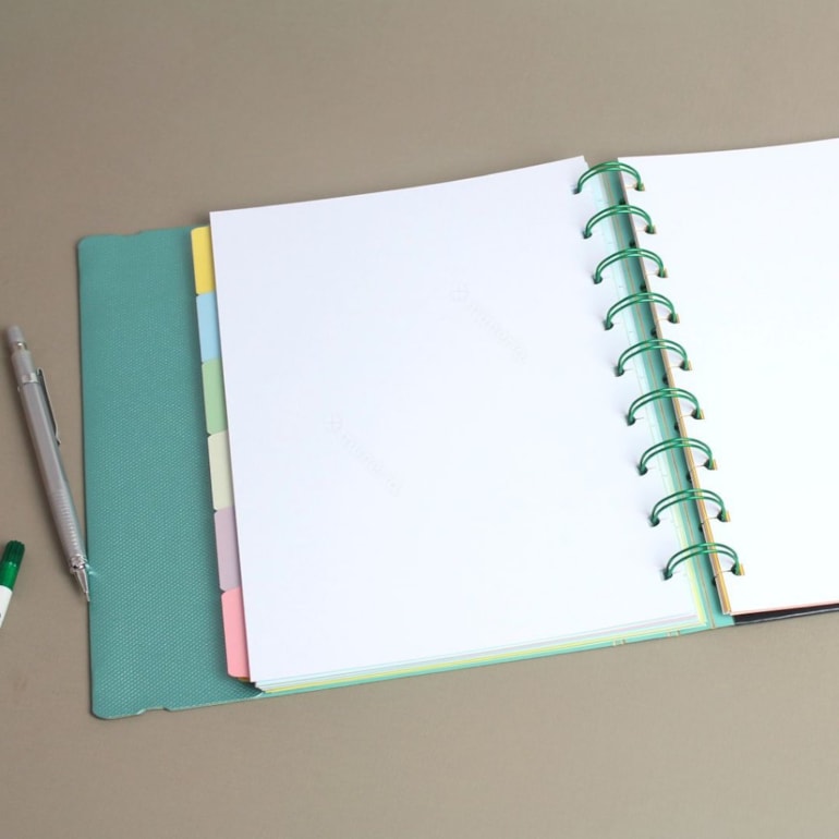 - Sistema flex: sistema inteligente de destaque e reposicionamento de folhas sem intermédio de adesivos, brochuras ou ferragens.