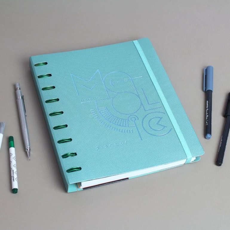 Completo e versátil, possui o system flex como principal diferencial, podendo destacar todas as suas folhas quantas vezes quiser sem amassá-las ou rasurá-las, apenas as reposicionando com o encaixe certo logo em sequência! Ele conta ao todo com 2 folhas de adesivo, 88 folhas de diversos tipos, fechamento através de um elástico, e um porta caneta de elástico fixado a lateral da sua capa!