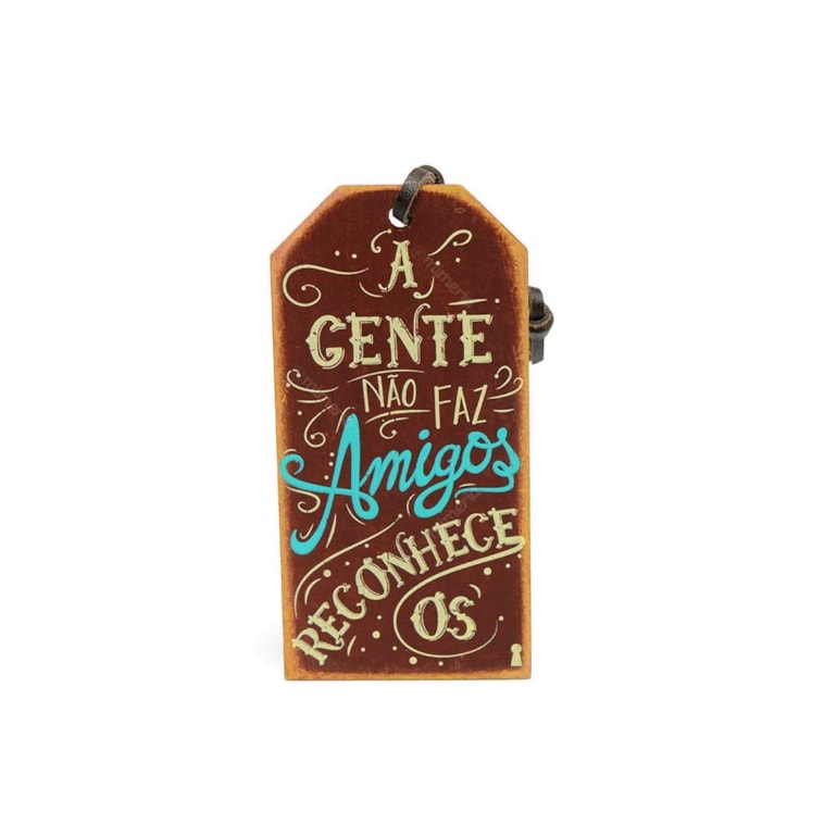 Linda e cativante, essa Plaquinha Tag Amigos é perfeita para dar um toque original na decoração. Feita em madeira, tem um estilo rústico e tipografia divertida. Vem com uma frase linda: A gente não faz amigos, reconhece-os!