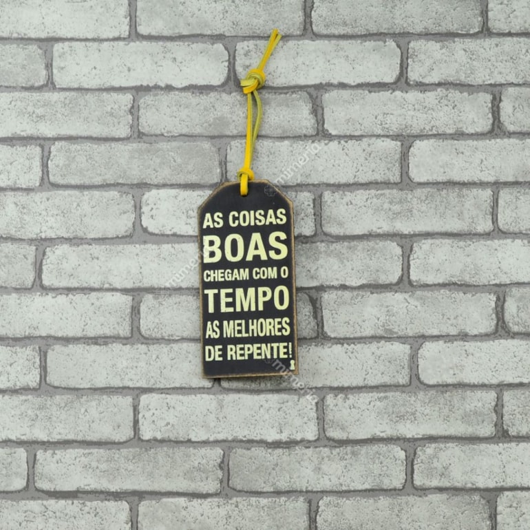 Conta com tamanho de 15x7,5 e tem um estilo rústico. As letras utilizadas (tipografia) da Plaquinha Tag As Coisas Boas são garrafais, trazendo objetividade e motivação. Vem com uma alçinha amarela ideal para pendurar na porta ou parede, enfeitando diferentes ambientes.
