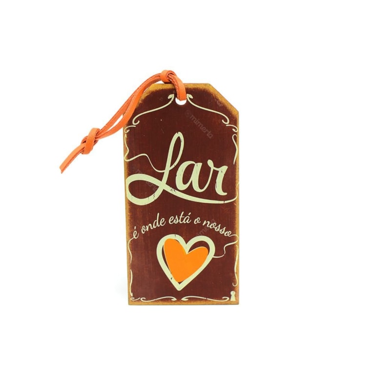 Essa Plaquinha Tag Lar é encantadora! Produzida em madeira, tem o fundo marrom e é estampada com um coração e uma mensagem: "Lar é onde está o nosso coração" - Como não se apaixonar?!
