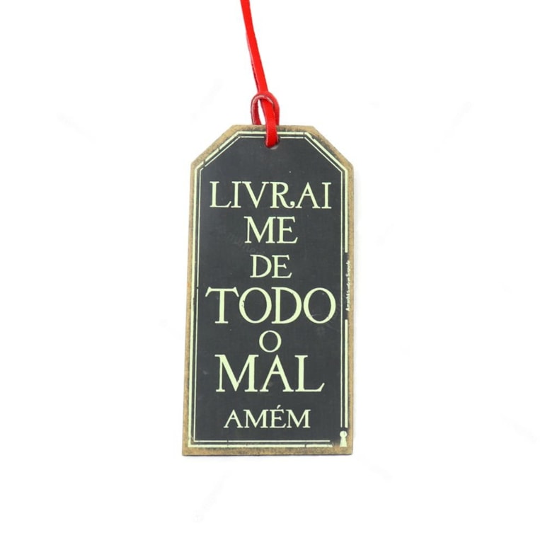 Na parte superior vem com um courinho, para deixar facilitar na hora de pendurar e o que a deixa ainda mais linda. A Plaquinha Tag Livrai do Mal é um presente maravilhoso para quem você ama pets.