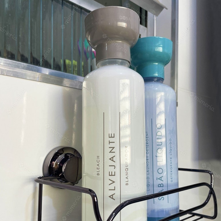 O Porta Alvejante com Dosador Cinza é perfeito para montar sua lavanderia dos sonhos.