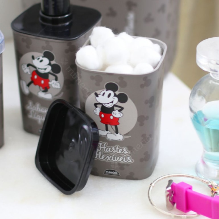 O Porta Cotonete e Algodão Mickey Mouse vai te ajudar na organização da sua casa.