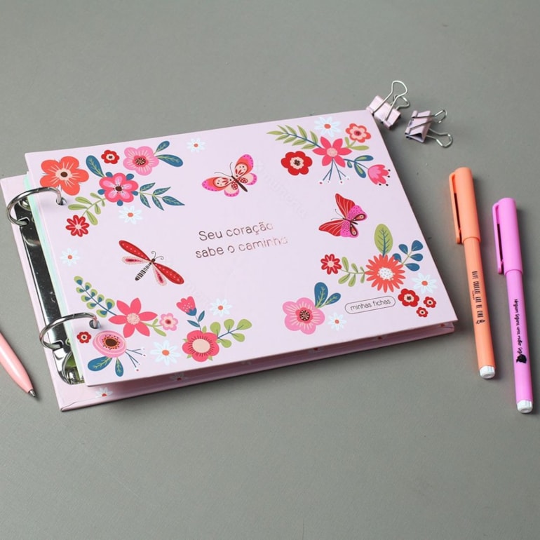 O Porta-Fichas Borboletas é ótimo para você organizar seus fichamentos, trabalhos acadêmicos, notas de reuniões e tudo o que quiser. Super versátil!