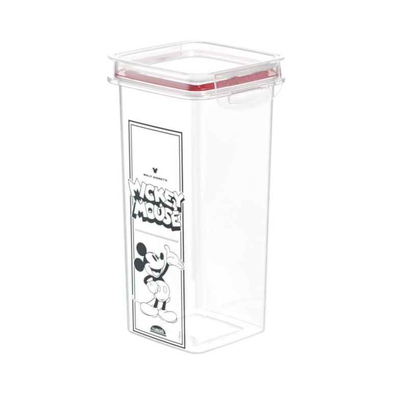 - Porta Mantimentos Hermético Quadrado Trava Mais Mickey Mouse 1,24 Litros;