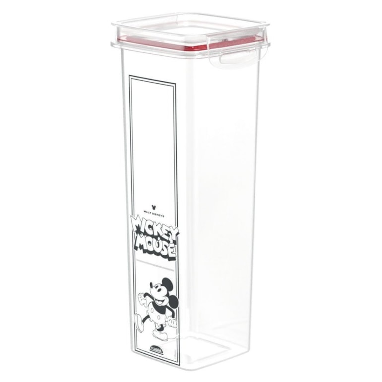 - Porta Mantimentos Hermético Quadrado Trava Mais Mickey Mouse 1,6 Litros;