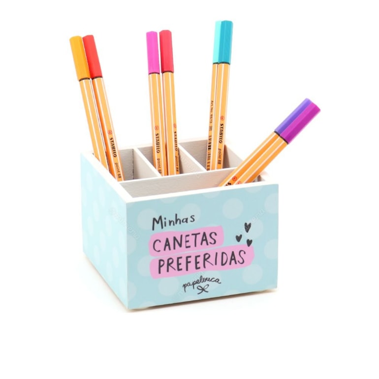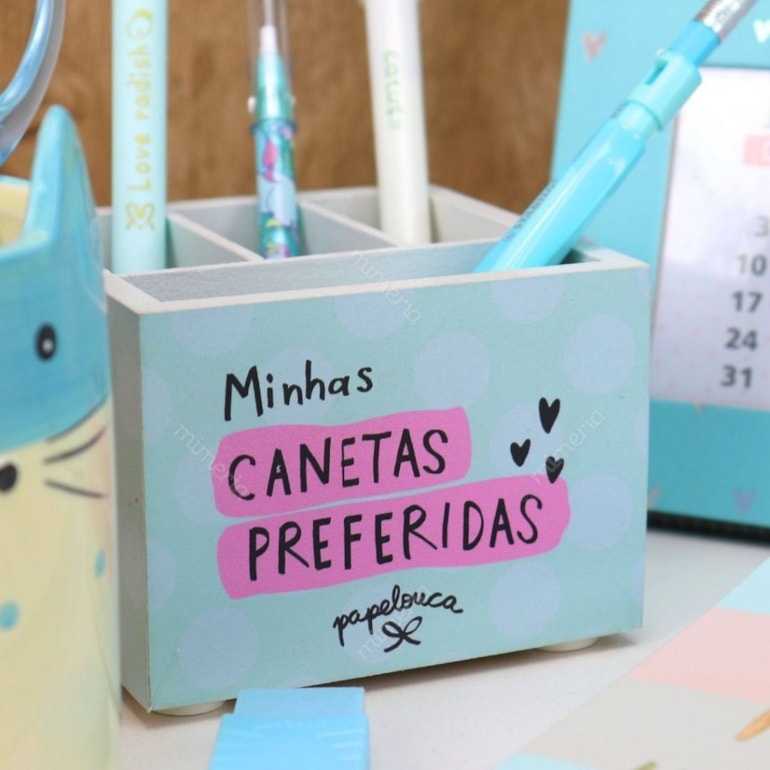A Porta Treco Minhas Canetas Preferidas é perfeita para presentear as "loucas" por papelaria, que são muito apegadas aos seus adoráveis mimos e adoram colecionar os mais variados tipos de canetas!