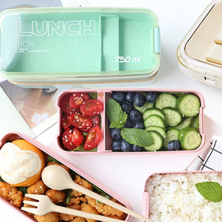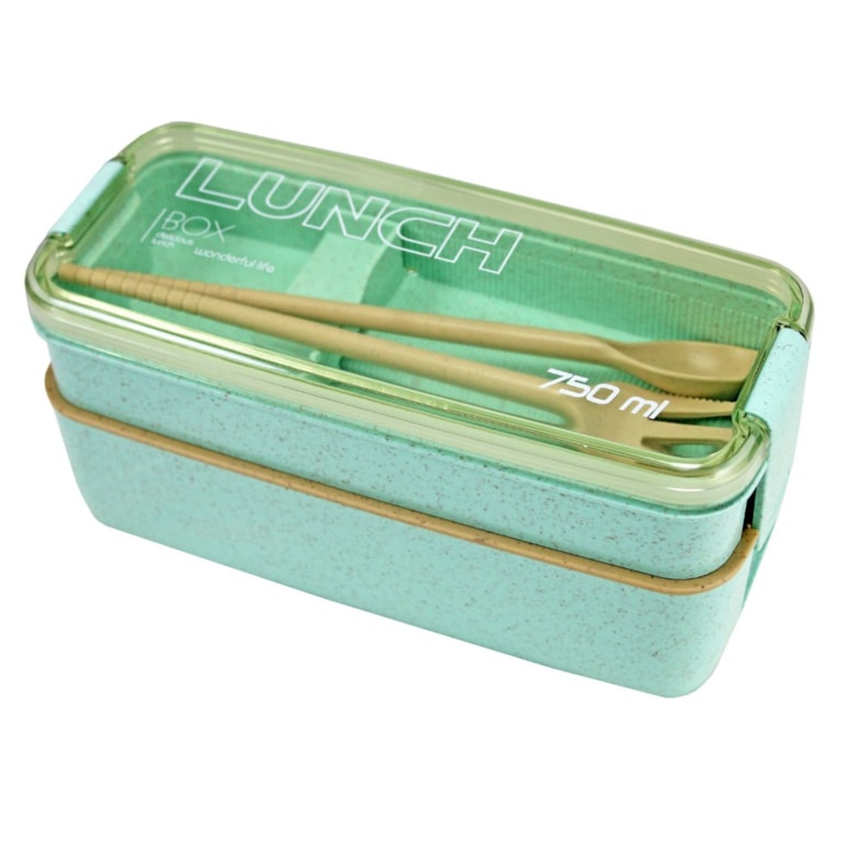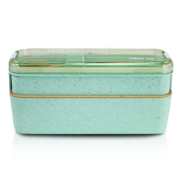 - Contém: 2 potes, 1 tampa, 1 divisória, 1 garfo e 1 colher.