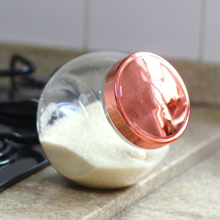 Deixe a sua cozinha super organizada e alinhada com o Pote Médio Redondo Premium com Tampa Metalizada Rose Gold! Ele é lindo e vai deixar a sua decoração muito refinada!