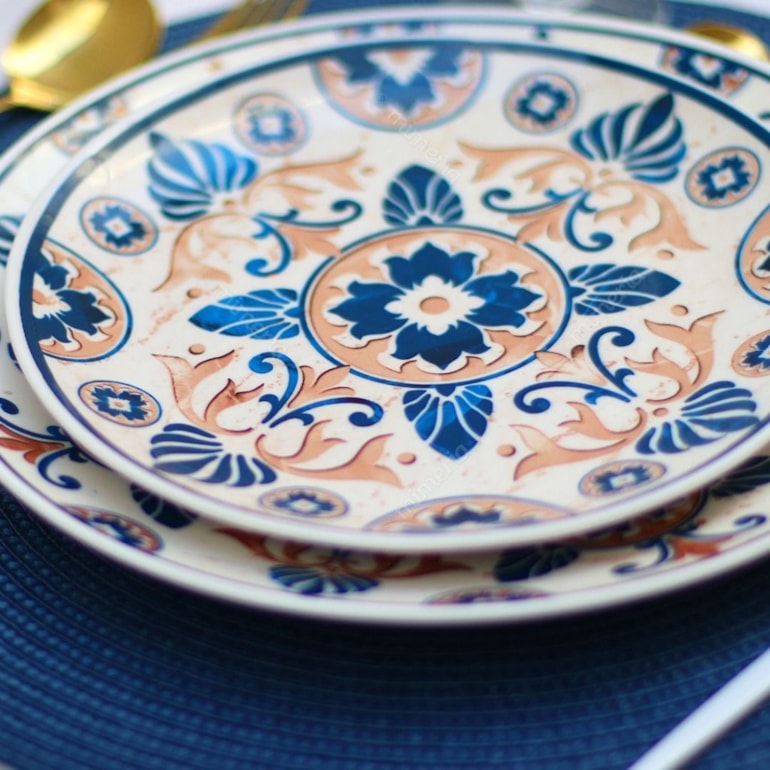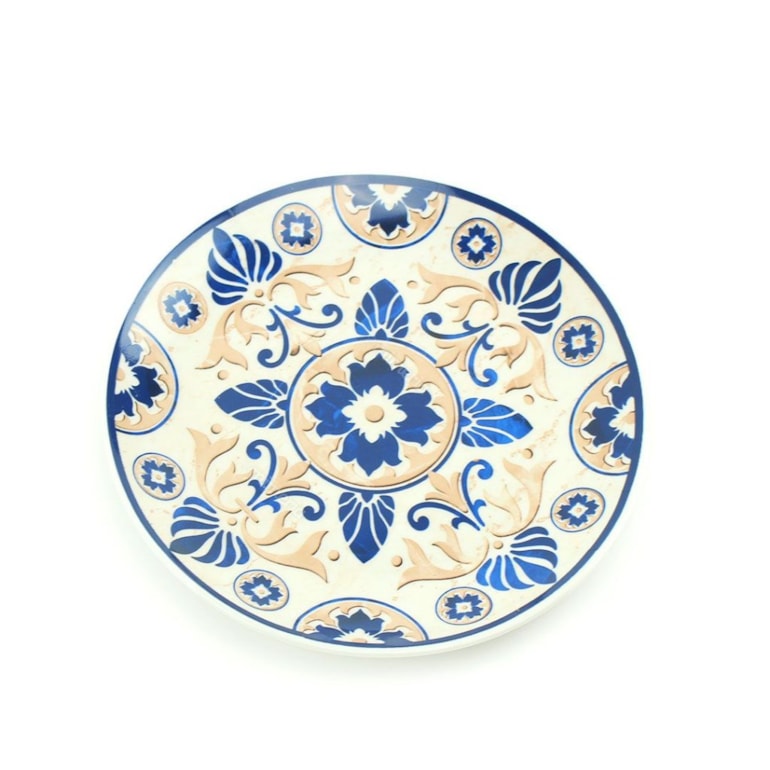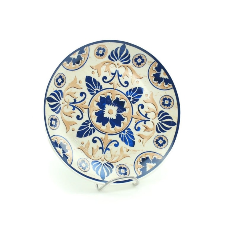 Para quem quer decorar sua casa com muita classe e elegância, o Prato Médio Azulejo é estampado como um clássico azulejo português, com tons de bege e azul. Você pode também usar para decorar suas paredes ou usar como centro de mesa.