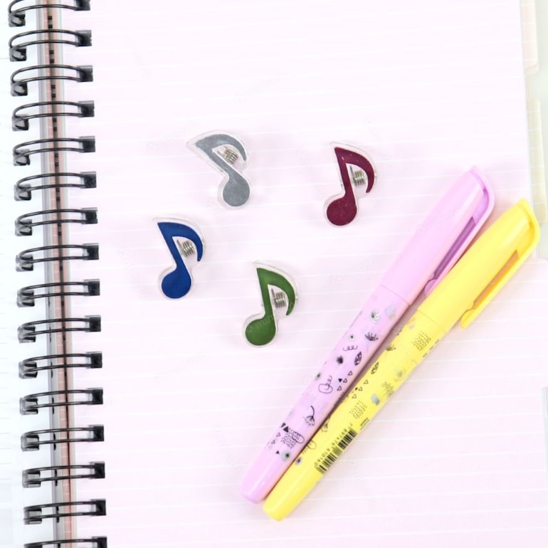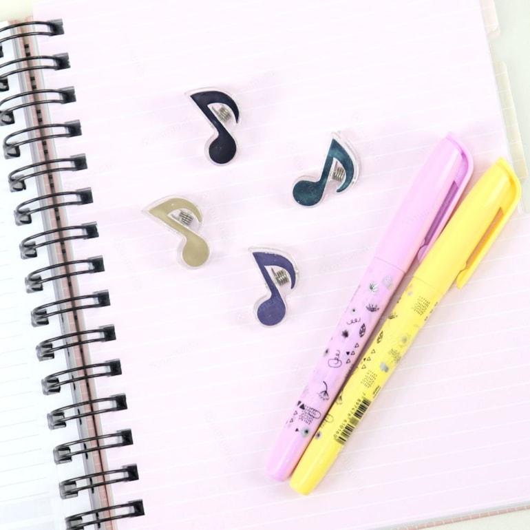 O Prendedor de Papel Oitava Nota Colorido com 4 Unidades vai encantar as amantes por papelaria e todos que amam a música!