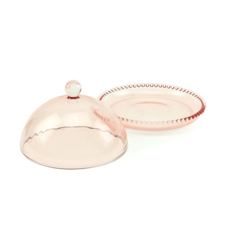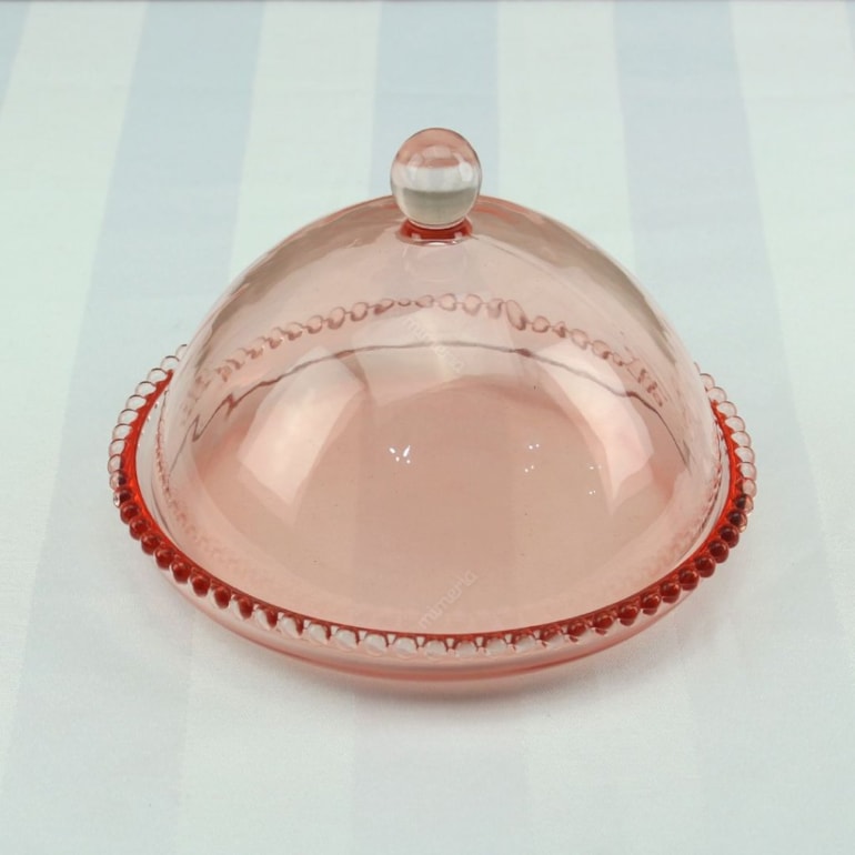 Produzida por cristal, ela é super bem trabalhada e de excelente qualidade, conta com um prato fundo acompanhado de uma redoma de vidro com um lindo cristal no topo, para facilitar na hora de puxá-la. Ela vem na cor rosa e tem pérolas de cristal contornando toda a sua circunferência, é um mimo meigo e extremamente encantador!