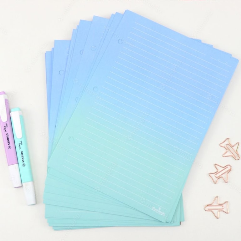 - Refil Degradê Verde Pautas Brancas para Caderno e Planner Argolado Fichário;