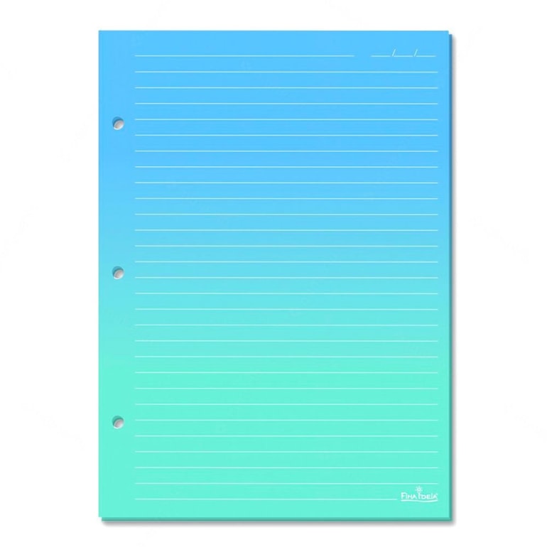 Produzido em papel offset, este refil vem com 50 folhas com um degradê do azul para o verde! Um encanto. São folhas pontadas com linhas brancas ideais para fazer desenhos em escala, gráficos, tabelas, desenhos à mão livre, mapas mentais e tudo o que você quiser.