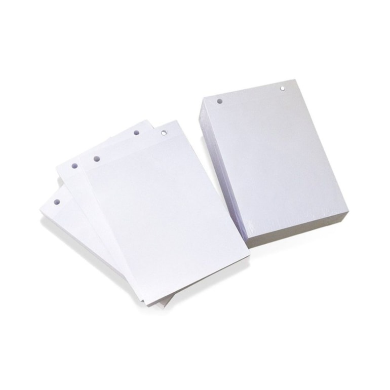 ORefil para Miolo Bloco de Mesaconta com folhas em papel offset 120 g/m² e vem com dois furos que se encaixam perfeitamente ao bloco de mesa.