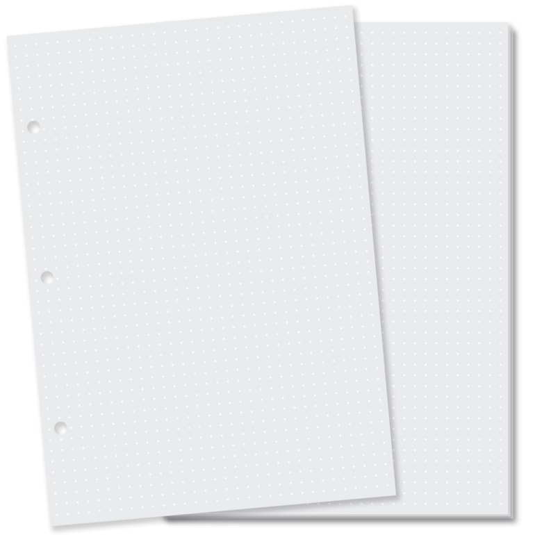 Muito usual, as folhas pontilhadas brancas num fundo cinza são ótimas para fazer desenhos, gráficos, tabelas, e até mesmo escrever. Dando um ar mais clean e minimalista para seu material!