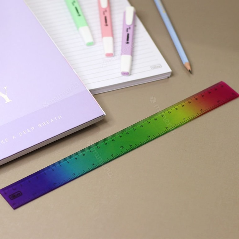 A Régua 30 cm Color Degradê é tudo o que você poderia querer! Ela vai deixar seus itens de papelaria ainda mais coloridinhos e alto astral!