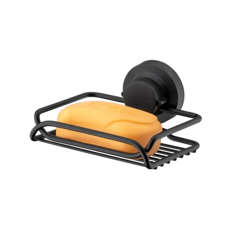 - Saboneteira com Ventosa Praticità Utile em Aço Carbono Ônix;