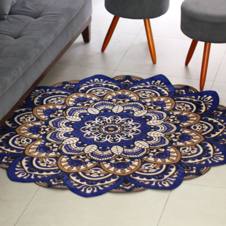 - Tapete Mandala Lótus Marinho e Ocre;