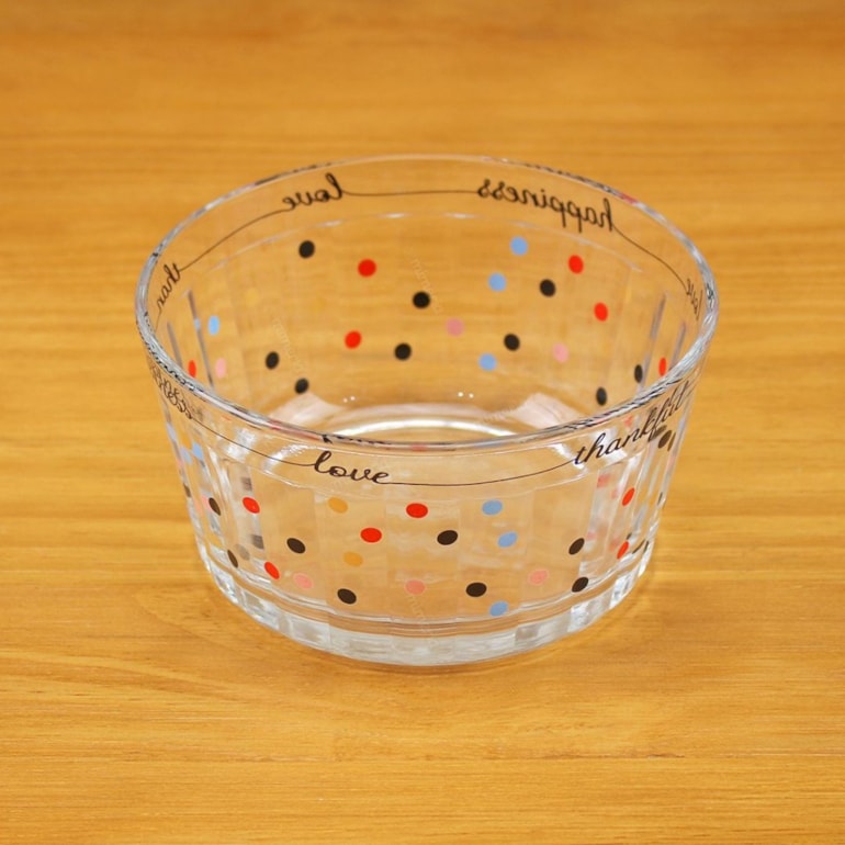 A Tigela de Vidro Mini Dots 600 ml é ótima para servir sobremesas, sopas e caldos, cereais, molhos e condimentos, saladas e tudo o que você quiser. Super prática e versátil!
